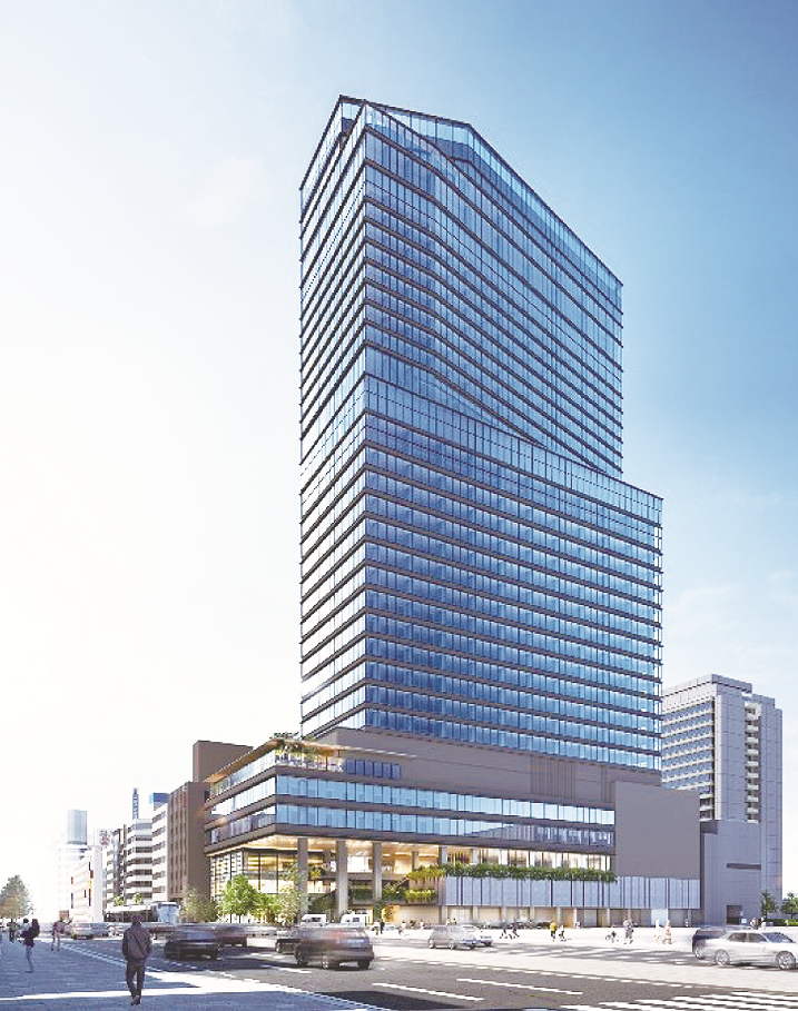 高層棟は地上31階地下1階。7~19階の計13フロアには基準階面積約1700㎡のオフィスを整備する。14階の一部にはコワーキングラウンジと貸会議室を設置。3階にはオフィスエントランスを設ける。オフィスフロアは高いスペース効率と円滑なコミュニケーションを実現する無柱空間を実現。CO2排出量やエネルギー消費量は最新の高効率設備の採用で目標をクリアし、耐震性能、非常用の電源や給排水にも対応。災害時でも万全の対策をとるという。