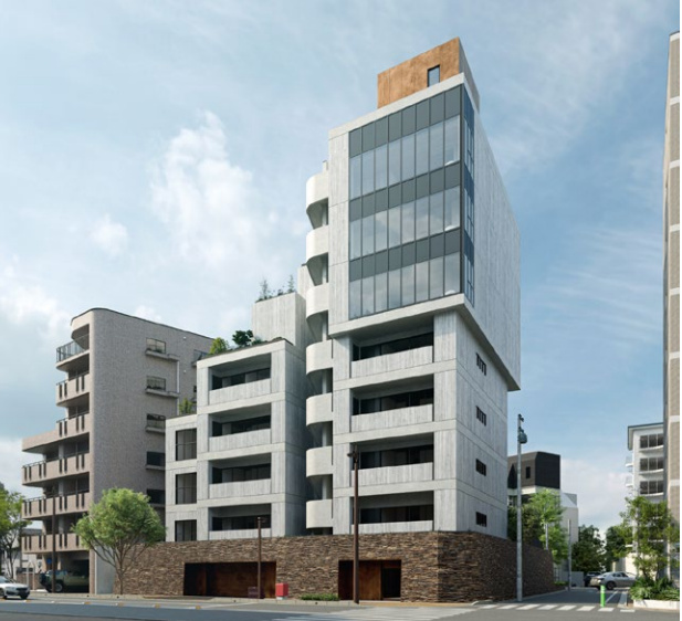 同物件は敷地面積879・24㎡、建築面積701・77㎡、延床面積2335・65㎡、鉄筋コンクリート造一部鉄骨造地上9階建て、全10邸のスモールラグジュアリーレジデンス。
