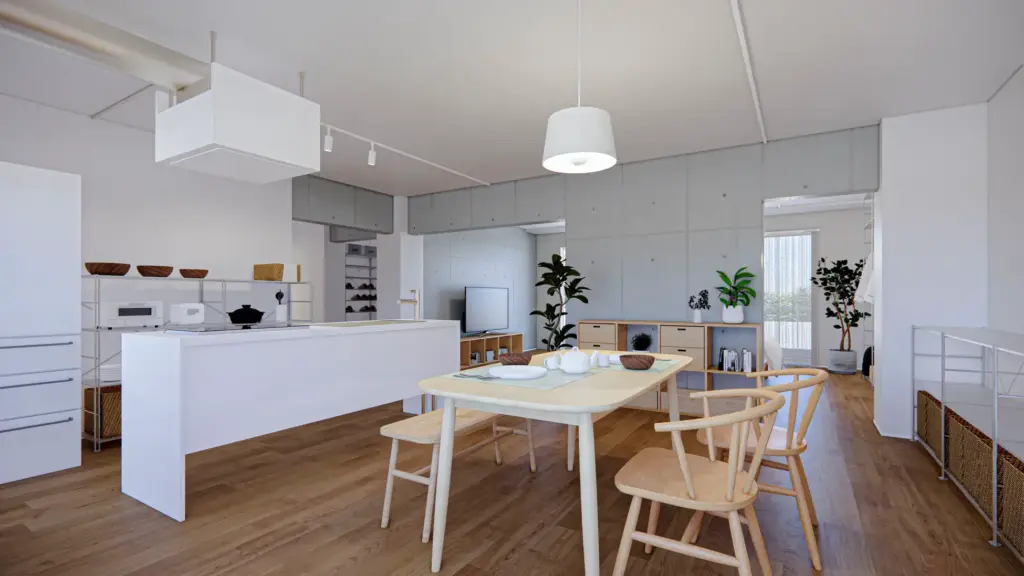 専有部内は居住者が引戸や無印良品の家具を用いて、自由に空間を仕切ることが可能な可変性のあるデザインを採用。