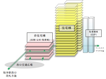 市では非住宅棟について、図書館、カフェやオープンステージ、音楽スタジオや多目的ラウンジなどの導入を目指すとしている。市民に「居場所」を提供したいという意味を込め、「あなたの居場所、私の居場所、取手駅前Library」というキャッチコピーも策定。施設の整備やイベント開催などにより、駅周辺地区の賑わい創出を目指す考えを示している。