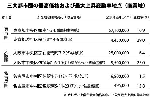 17日、国土交通省が全国公示地価を公表した。全用途平均、住宅地、商業地のいずれも5年連続で上昇し、全用途平均、商業地は上昇幅が拡大したが、住宅地は前年と同じ上昇幅となった。国交省では、景気が緩やかに回復するなか、地域や用途により差があるものの三大都市圏では上昇幅が拡大し、地方圏でも上昇傾向が継続するなど、全体として上昇基調が続いていると分析する。