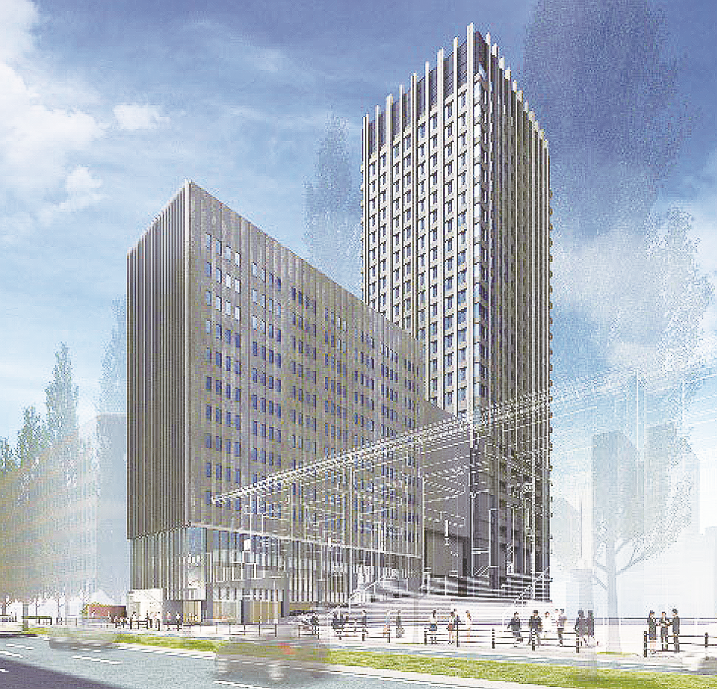 建物は敷地面積約3300㎡、延床面積約4万5560㎡、地上26階地下1階。高層棟とホテル棟で構成する複合施設となる。