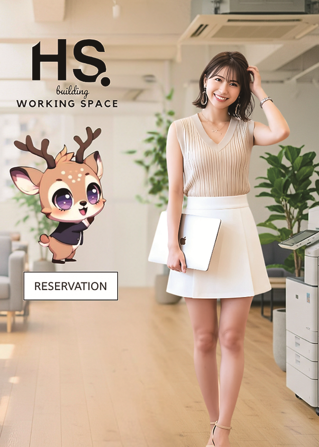 「H・Sビル」のHPを閲覧すると、目に飛び込んでくるのが奈良の鹿をモチーフにした公式キャラクター「マルモくん」と、公式イメージガールの「朝比奈エリカ」だ。「マルモくん」と「朝比奈エリカ」はHP上でビルの紹介やコワーキングスペースの利用方法を教えてくれたり、AI活用講座といった記事も展開している。直近では公式インスタグラムで「マルモくん」がビルで仕事しているシーンに声をつけたアニメーション動画が掲載されている。