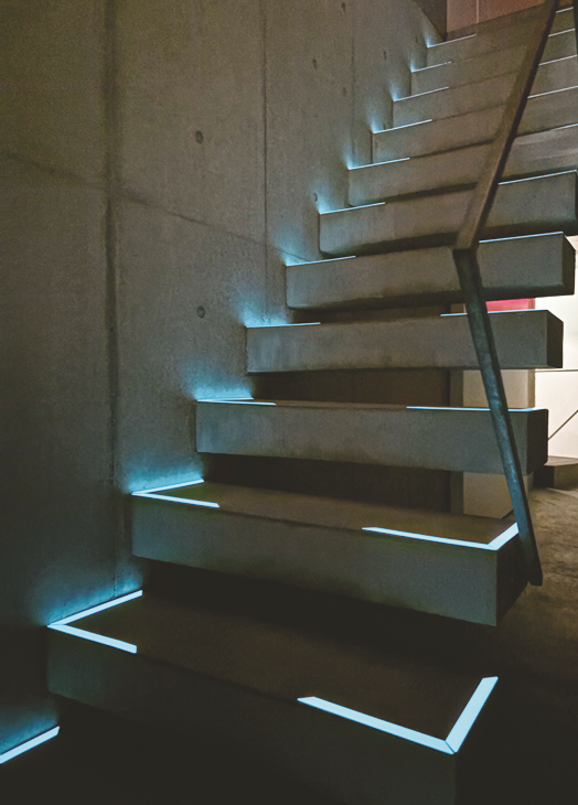 同社が手掛ける高輝度蓄光ユニット「ナイトコンシェルジュ」は、機能性とデザイン性を両立した商品。津波避難誘導標識システム「JISZ9097」の基準を満たしており、発光開始から12時間経過後も1㎡あたり3ミリカンデラ以上の明るさを保持する。田村氏は「従来の蓄光製品の大半は防災・保安目的で開発され、標識としての役割をもって流通しています。一方、『ナイトコンシェルジュ』は蓄光による空間演出を新たなメディアととらえ、高い機能性も持ちつつも人と空間のコミュニケーションを目的に開発された点が、従来製品と大きく異なる点です」と話す。防犯・誘導灯や案内サインなどでは、空間を照らすことを前提としたLED照明が用いられる例が多い。「ナイトコンシェルジュ」は照明設備の代替を目的とするものではなく、非点灯・非電力の蓄光によって、暗闇を保ったまま人の動線や存在を穏やかに可視化する新しいサインのあり方を提案している。